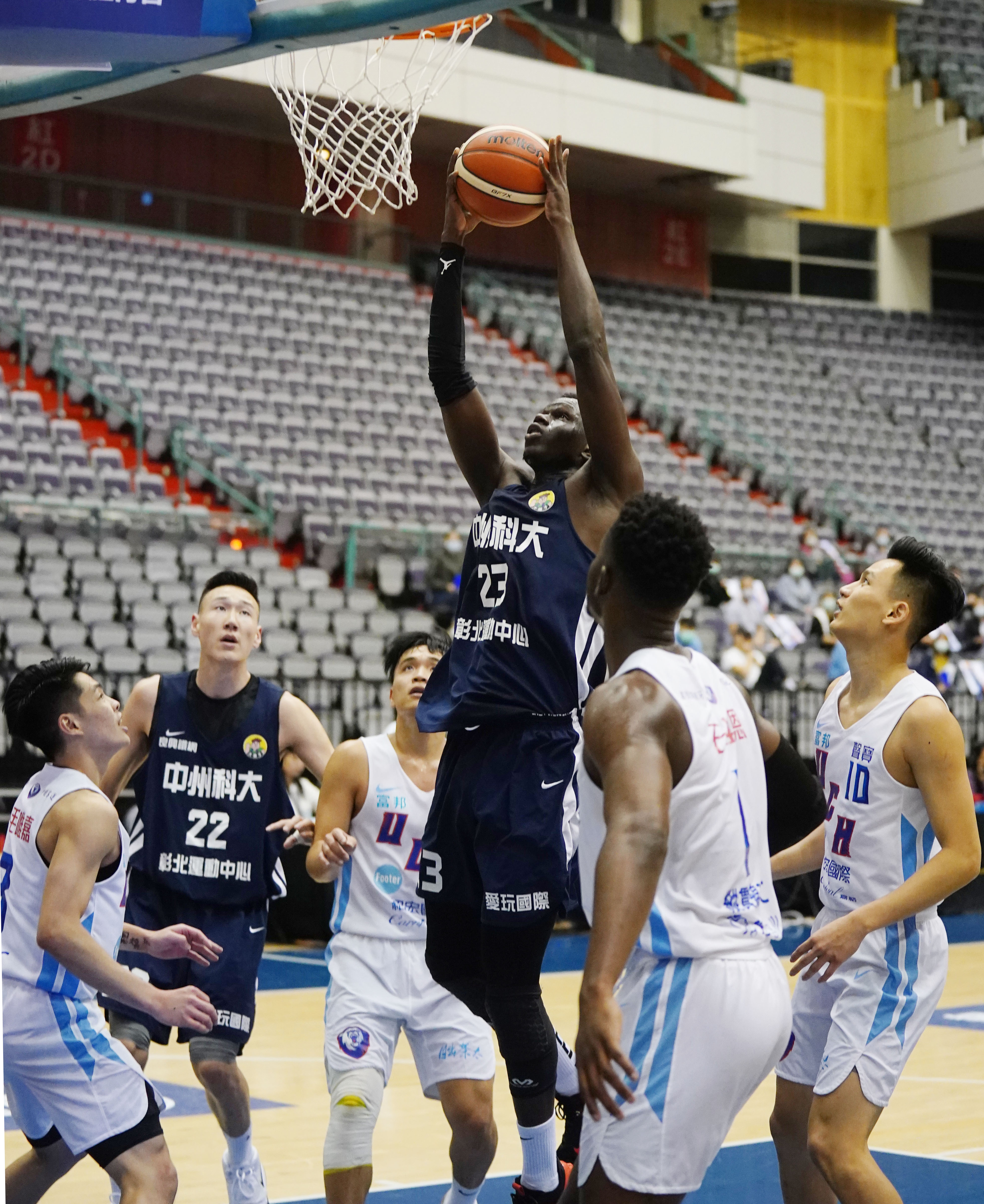 中州科技大學外籍球員斑霸以身高優勢主宰禁區,他於受訪時表示有意願成為台灣的歸化球員。 圖/中華民國大專校院體育總會提供
