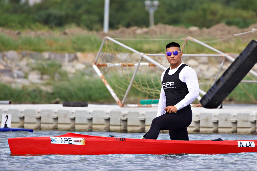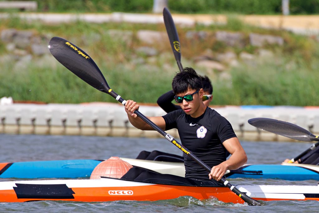 佛光大學賴冠傑在輕艇競速項目加拿大艇單人組中,擊敗對手,順利取得2020年亞洲輕艇競速錦標賽參賽資格。 圖/黃宥綺攝