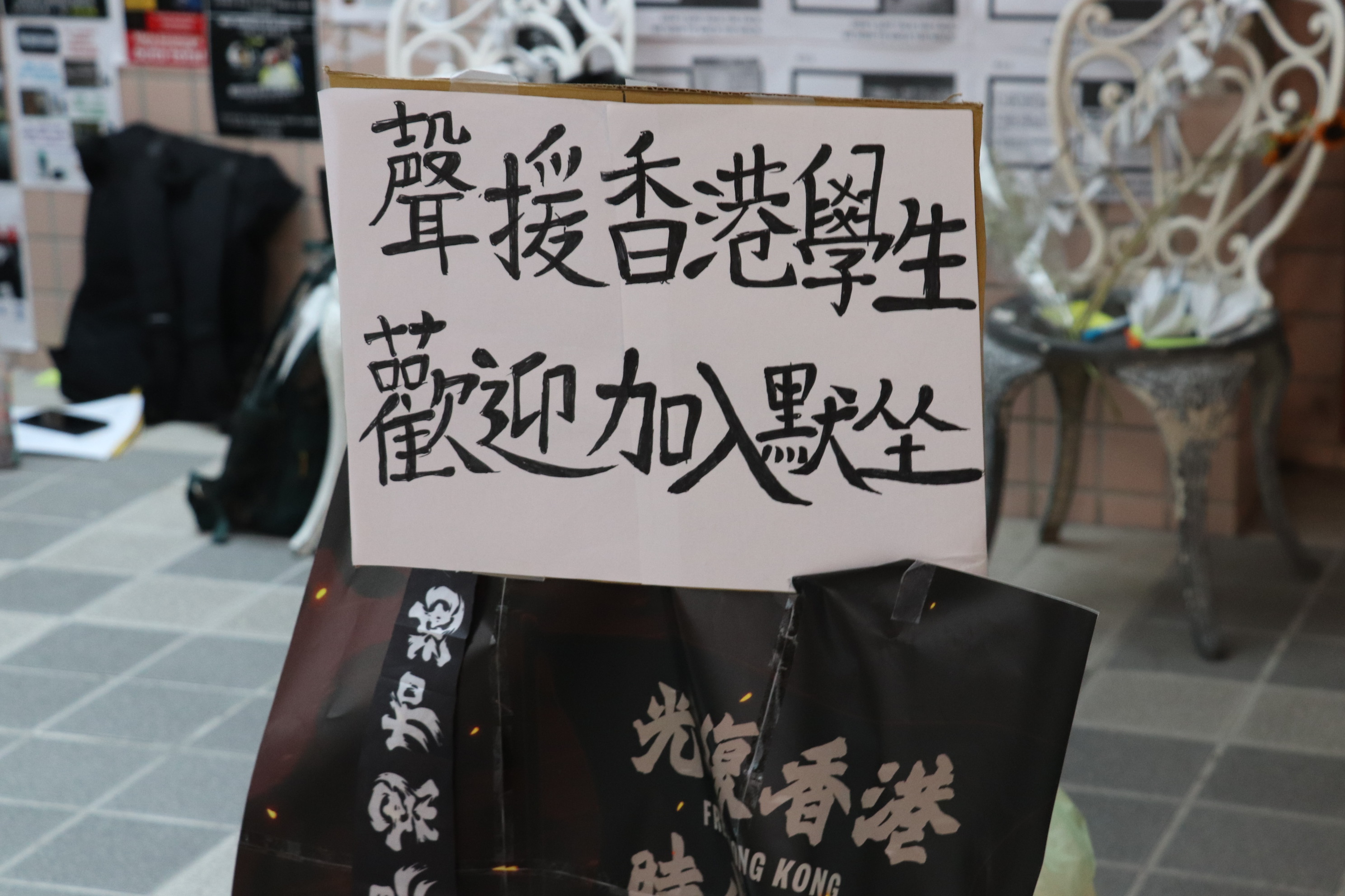 靜坐活動現場聚集不少港澳生與台生,希望透過實際參與,聲援香港。 圖/白欣攝