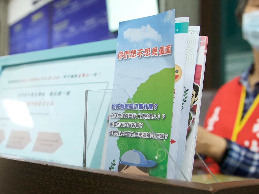 除了宣傳文宣、校園演講外,台中地方檢察署也在服務台設立諮詢窗口,讓民眾知道更多相關資訊。 圖/王品淇攝